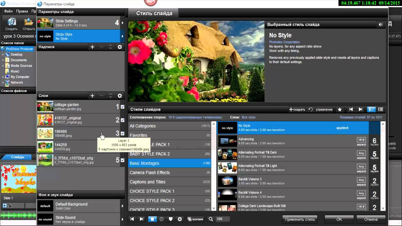 ProShow Producer имеет стандартное количество так называемых «стилей», которые включаются при установке приложения.