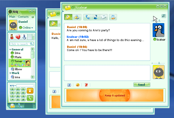 Используйте также версию ICQ для Android вы можете получить яку на тройку ниже. В аське для компьютера вы можете выбрать подходящий вам статус. Начиная со стандартных, таких как «Онлайн» или «Зайняты», или вигадатов своих, уникальных. Але сплкуючись в аське не забывайте, что все ваши объявления находятся во власти AOL Inc, так как компания может просматривать и упорядочивать их по своему усмотрению. Это не способ распространять ценную информацию через ICQ. Я прекращаю ICQ версию скачать бесплатно русский язык для прямой рассылки с официального сайта Вы можете без регистрации на нашем сайте.