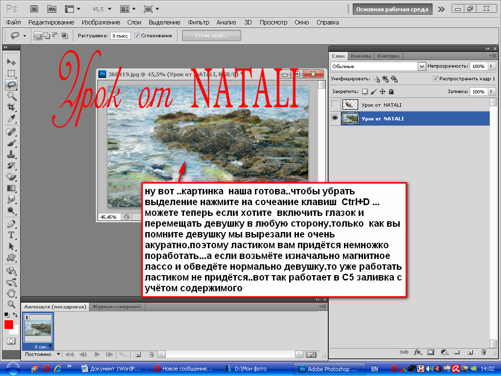 - Используем на клавиатуре цифры от 1 до 0. Цифра 1 изменит непрозрачность на 10% … 9 – на 90%, а 0 – на 100%. Если набрать двузначное число, то именно на такую величину изменится непрозрачность. То есть, если мы на клавиатуре наберем 46, то непрозрачность слоя будет 46%.