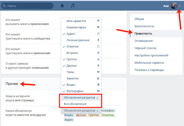 В Интересах есть Дополнительные настройки.