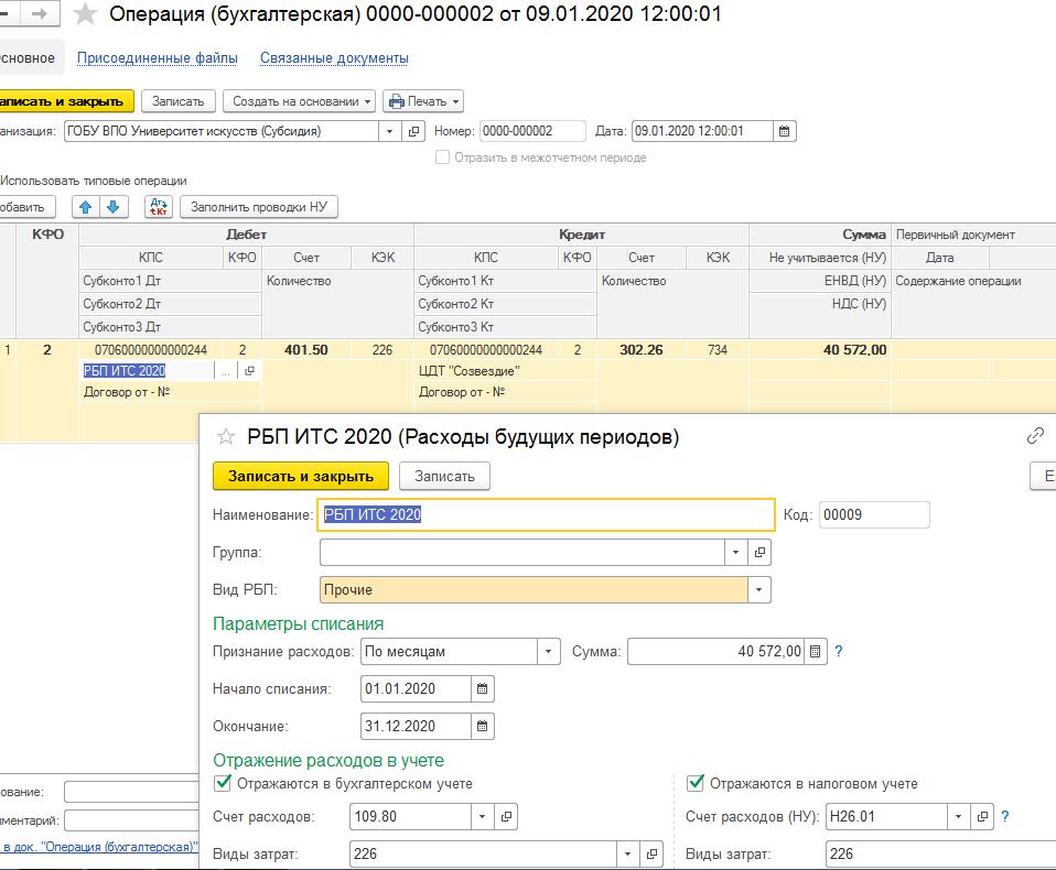 После проведения процедуры классификации РБП их величина отражается в бухучете и постепенно списывается с использованием следующей корреспонденции счетов: