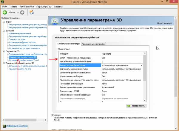 - Также мы можем перейти во вторую вкладку, которая называется «Управление параметрами 3D» и задать там более тонкие настройки. Например: