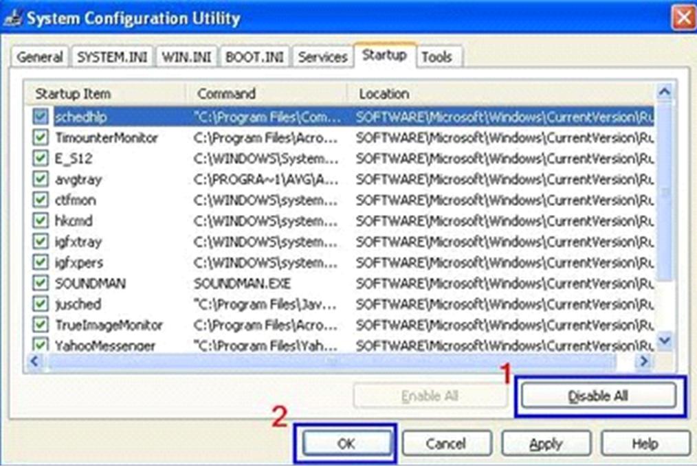 Единственная причина для выборочного запуска и проверки одного или обоих элементов — выяснить, не вызывает ли конкретная служба или элемент запуска проблемы.