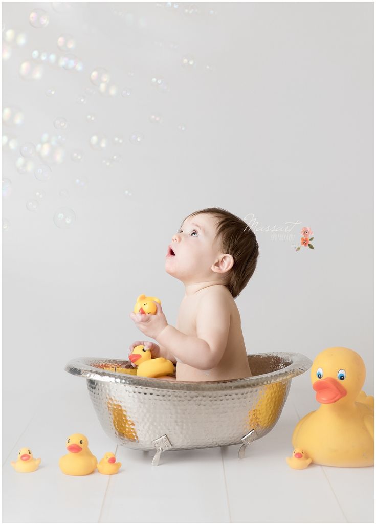 Добавьте свой реквизит в ванну после того, как ваша модель устроится в ней. Это поможет всему остаться на плаву.