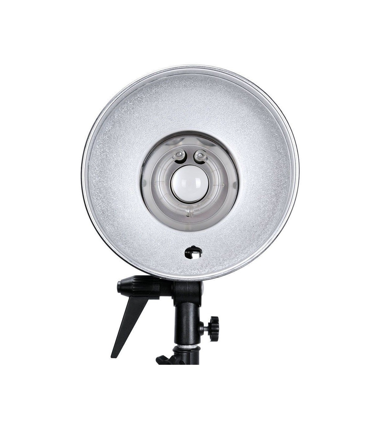 На объективе крепятся кольцевые и двухламповые вспышки.