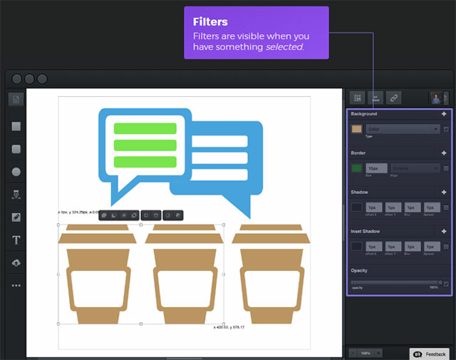 • Brush Tool enables you to paint fluid shapes with vectors. Customize your own vector brushes for unlimited creativity!