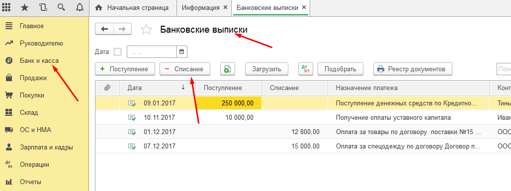 В целом все операции по р/с подразделяются на две категории: списание и зачисление. Такое разграничение определяется направлением движения денежных средств на расчетном счете.