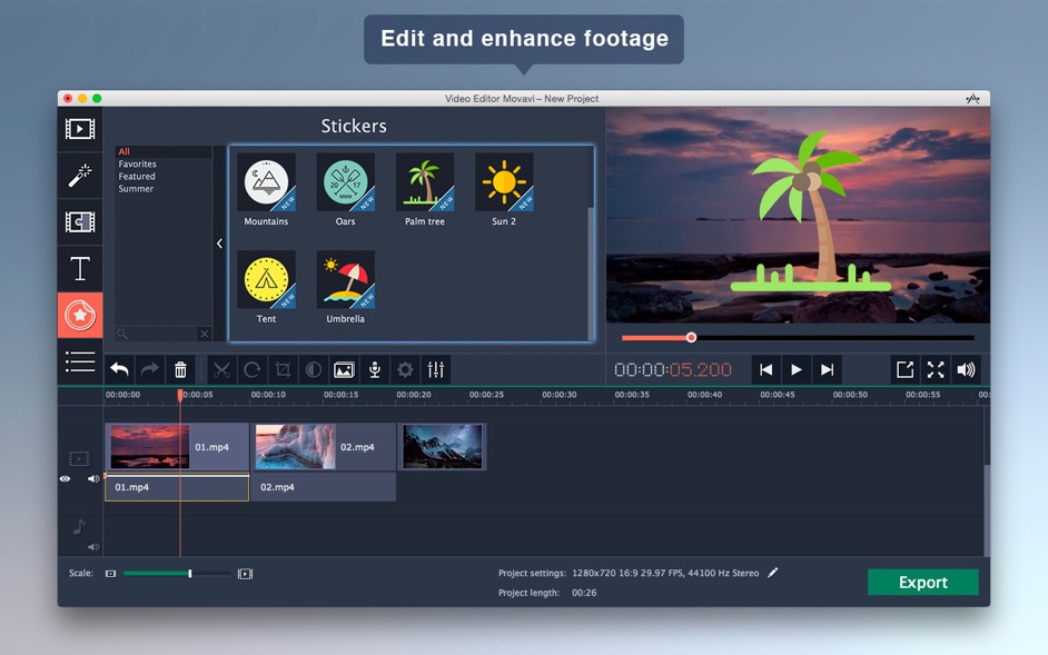 Добавьте заголовки и наслаждайтесь простым экспортом мультимедиа на YouTube, Facebook, Dailymotion и многие другие.