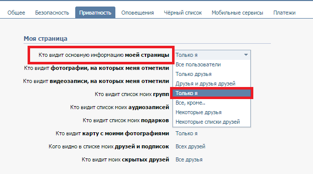 - Как скрыть свою страницу ВКонтакте, фото, видео, стену, друзей, группы