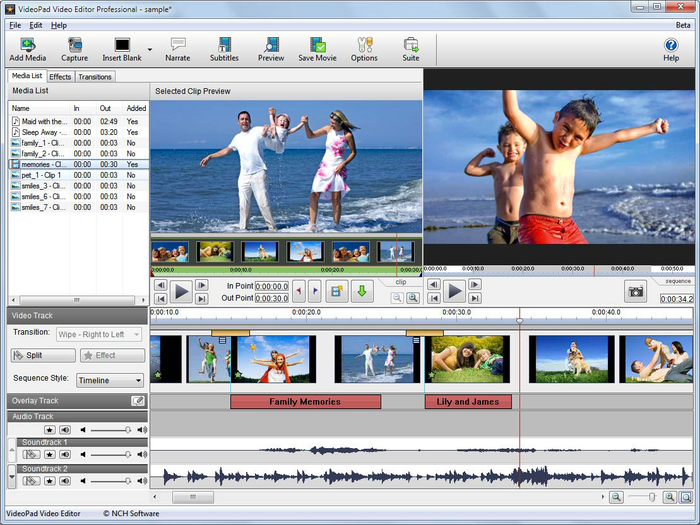 VideoPad Video Editor — это бесплатное программное обеспечение для редактирования видео . С помощью этой программы для создания фильмов вы можете легко создавать потрясающие видеоролики и выполнять основные задачи редактирования .