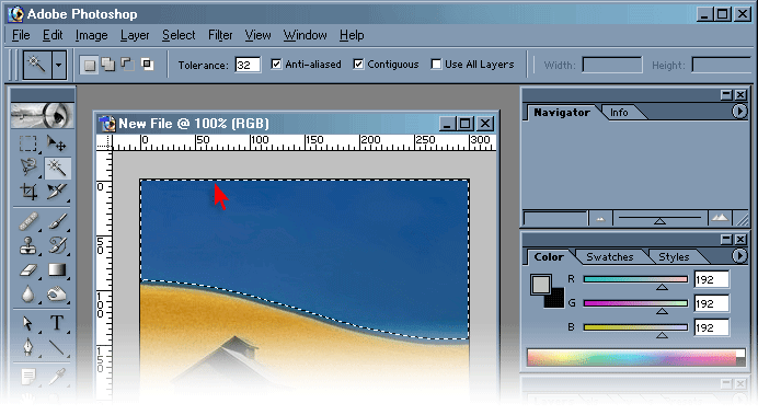На предыдущем снимке экрана вы видели, что по нажатию на основной мак выделялись почти все маки. Это произошло только потому, что флажок Contiguous был отключен. Это означает, что все пиксели изображения, похожие на выбранный пиксел, будут включены в выделение.