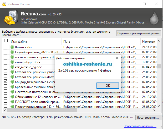 | Восстановление документов, фотографий, видео музыки и электронной почты. | |