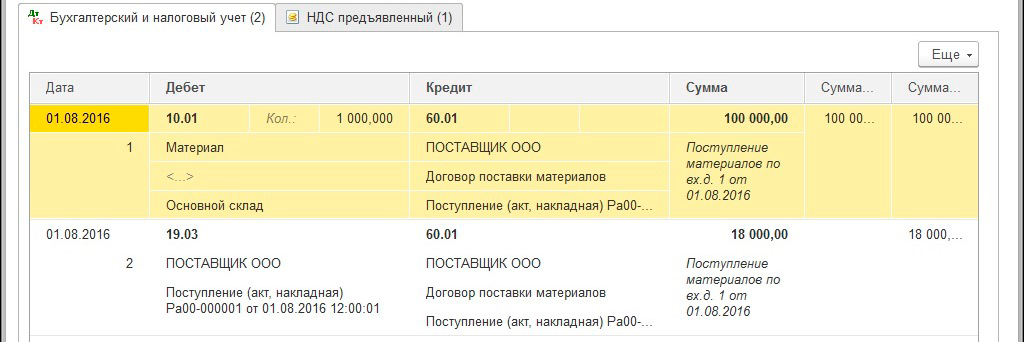 Так как в налоговом учете стоимость материалов уже равна нулю, то в момент возврата формируются только проводки с видом БУ и ВР.