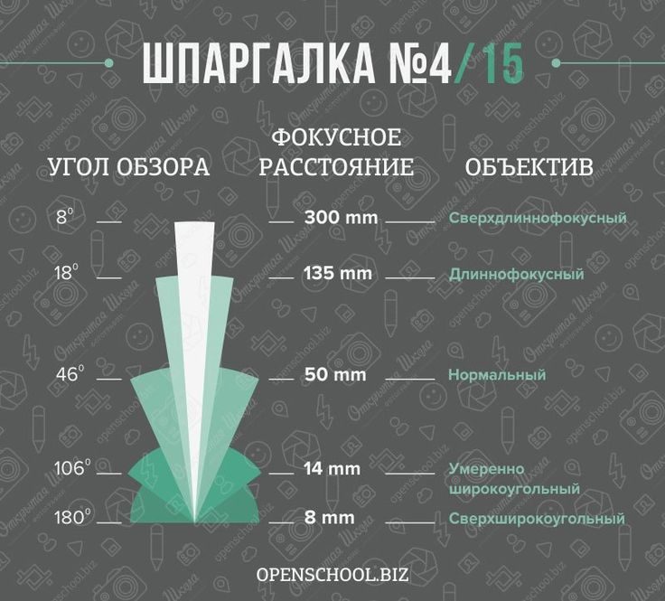 Они бывают широкоугольные (до 35 мм фокусного расстояния, лучше всего подходят для съемки пейзажей), стандартные (35-75мм, подходят для съемки большинства сюжетов), телеобъективы (от 75 мм).