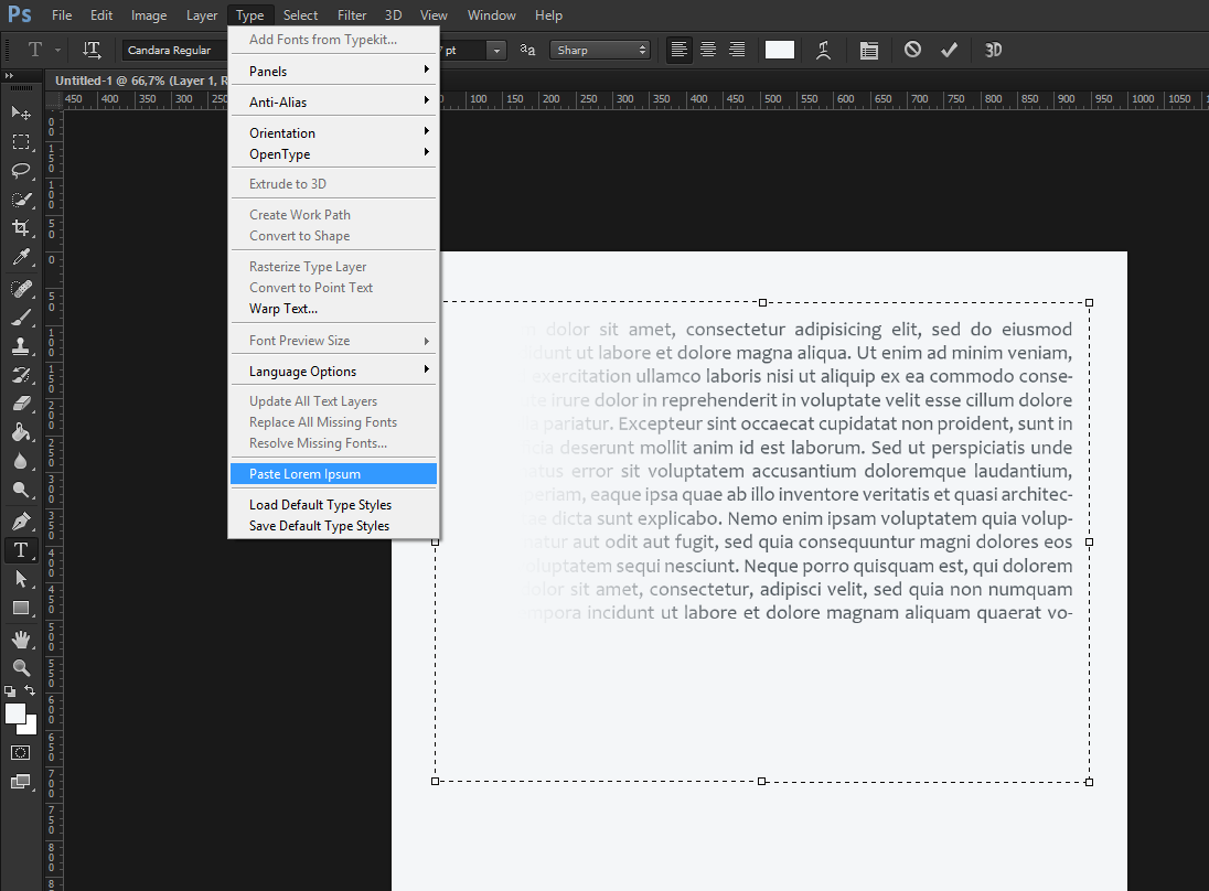 Чтобы перенести в Фотошоп готовый текст, его нужно предварительно отправить в буфер обмена.