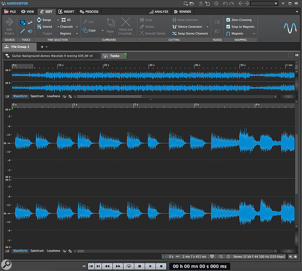 В период обзора у меня оказался набор музыкальных треков, которые требовали окончательной обработки и базового мастеринга. Мой обычный подход включал бы Wavelab 8 и пару довольно дорогих сторонних плагинов.