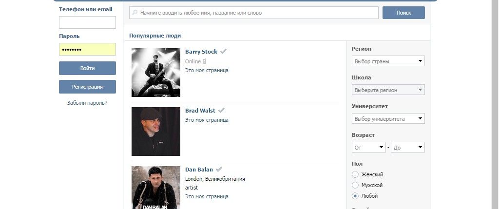 3 . Откроется либо личный профиль Вконтакте, либо главная страница сайта.