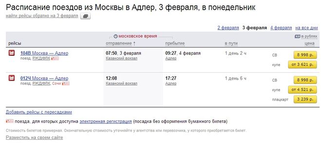 Получите расписание поездов более чем в 70 регионов России, Казахстана и Армении (полный географический диапазон смотрите на http://rasp.yandex.ru/info/geo).