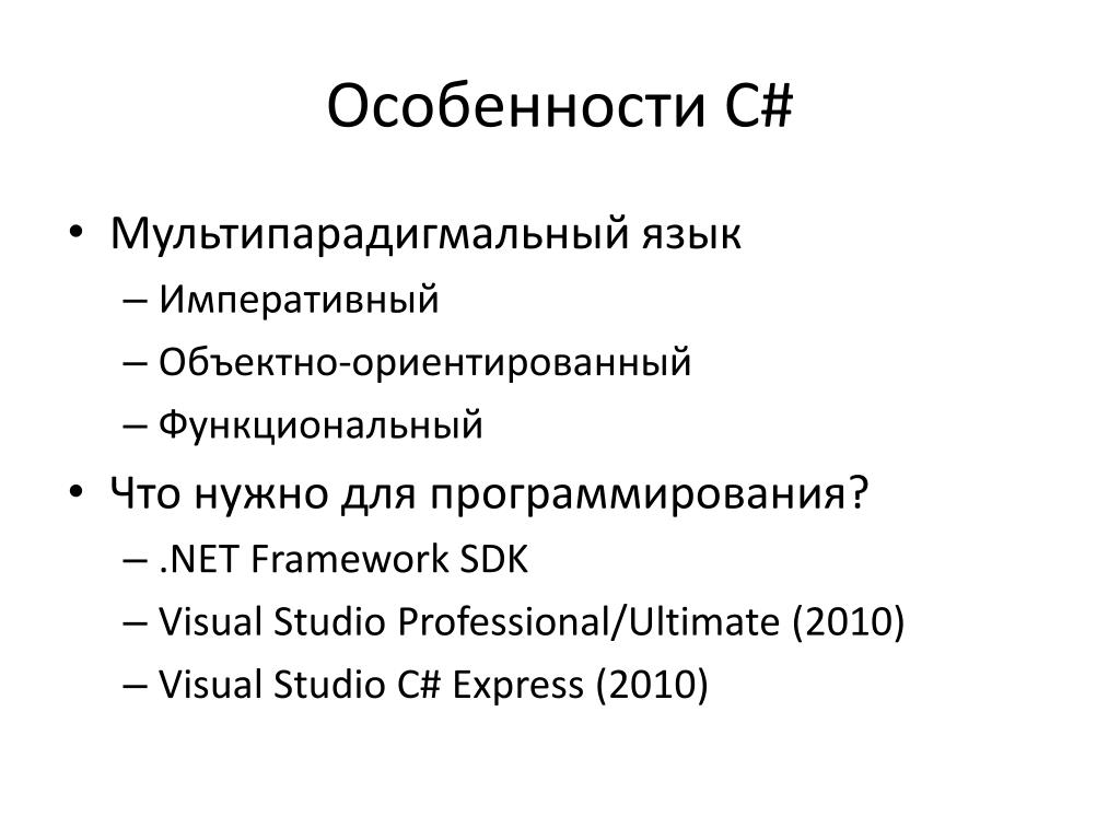 типа программного обеспечения или компонентов для платформы Windows. Язык C# и