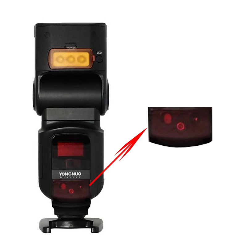 Также Yongnuo YN-968NII имеет встроенный LED осветитель с возможность настройки яркости, а также съемный белый и оранжевый рассеиватель.
