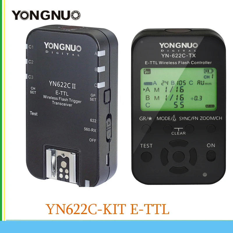 Беспроводная триггерная вспышка с комплектом из двух приемопередатчиков беспроводной вспышки YN-622C II E-TTL от Yongnuo. Благодаря совместимости с камерами Canon E-TTL / E-TTL II и дополнительной поддержке протоколов связи 622 и 560-RX этот набор будет хорошо работать со многими вспышками.