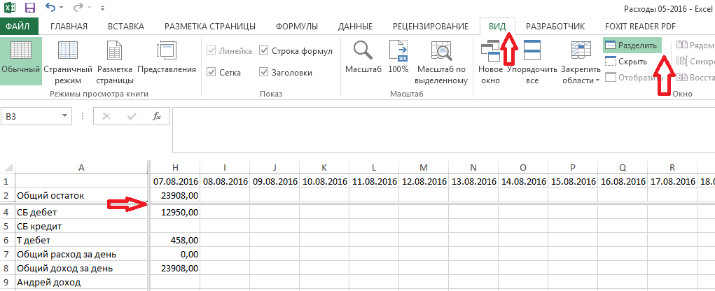 Как в Excel закрепить строку при прокрутке