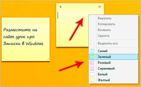 А если нажать по записке правой кнопкой мыши, то можно изменить её цвет. На выбор 7 цветов!