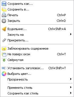 Щелкнув правой клавишей мыши по серой области заголовка (3), можно сохранить заметку, установить для нее будильник, сделать свернутой или развернутой, написать заголовок, выбрать цвет стикера, настроить прозрачность и т.п.