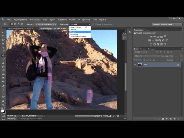 - Здесь вы можете увидеть результаты, полученные с помощью других методов адаптации, включая заливку с учетом содержимого.