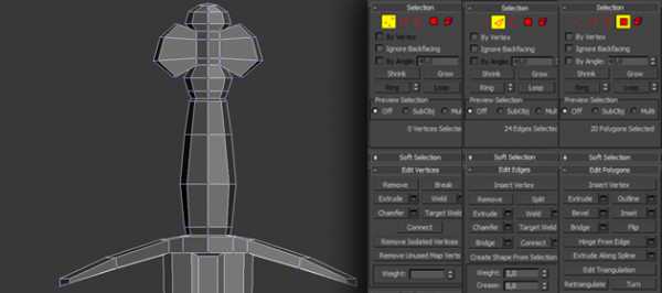 После того, как вы научились конвертировать модель в редактируемый многоугольник, научились выбирать подчиненные объекты и изучили некоторые базовые свойства модификатора Editable Poly, пришло время изучить работу с вершинами ребрами (гранями) и полигонами более подробно.