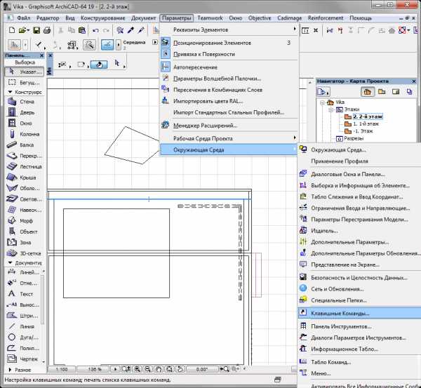 И напоследок. Список всех назначенных Горячих клавиш Вы можете открыть прямо из среды ArchiCAD, воспользовавшись командой Параметры/Окружающая среда/Клавишные команды…