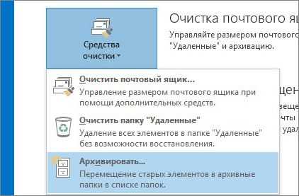 Чтобы управлять доступным местом в используемом почтовом ящике, можно перемещать в другое место старые элементы, которые важны, но редко используются. Такой процесс выполняется автоматически с помощью средства автоархивации, но Вы также можете запустить процесс архивирования вручную в любой момент.