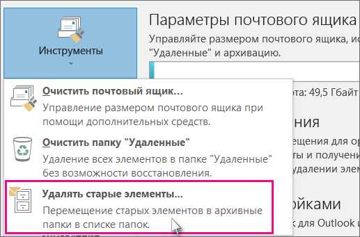 Автоархивация помогает освобождать место в почтовом ящике или на сервере электронной почты за счет автоматического перемещения элементов в архив. В зависимости от параметров функция автоархивации выполняет одно или оба из описанных ниже действий.