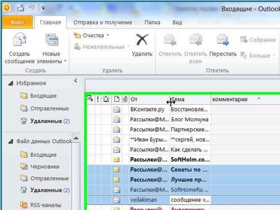 чтобы хранящиеся в этом файле данных письма, были загружены в программу. После выбора файла почтовой программе Outlook требуется некоторое время для того чтобы подгрузить все файлы из архива. В итоге мы получаем слева в навигационной панели две архивные папки: