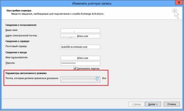 Кликаем по кнопке «Изменить» - В блоке «Параметры автономного режима» перетащите ползунок так, как вам нужно. Если перетащить его до правого конца, то письма будут отображаться всегда, независимо от того, как давно они были получены и прочитаны.