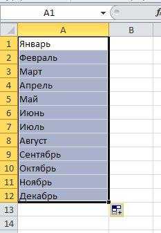 Как только вы отпустите кнопку мышки выделенные ячейки заполняться названиями месяцев.