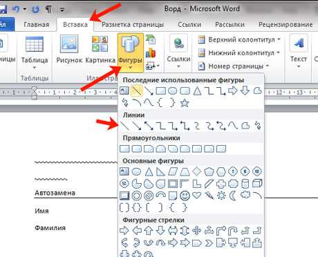 В Ворде имеются инструменты для рисования. В большом наборе всевозможных фигур можно также найти и горизонтальную линию, которая послужит нам обозначением строки для заполнения.