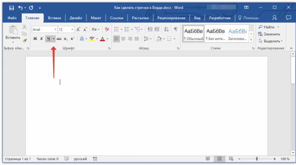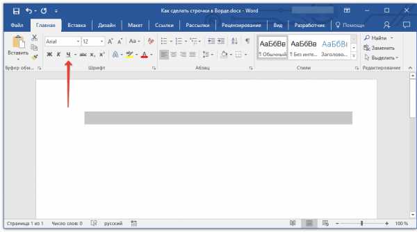 4. Выделите пустую строку или строки и нажмите кнопку “Подчеркнутый” на панели быстрого доступа (вкладка “Главная”), или используйте для этого клавиши “CTRL+U”.