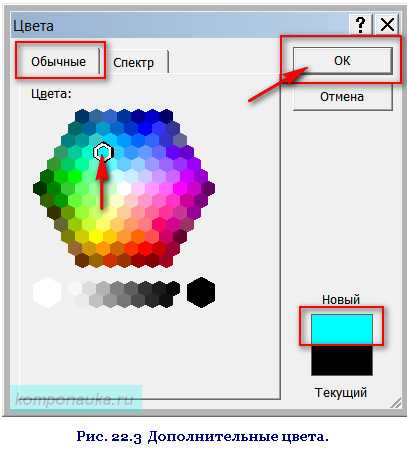 Появляется окно с дополнительной палитрой цветов, открытое на вкладке Обычные.
