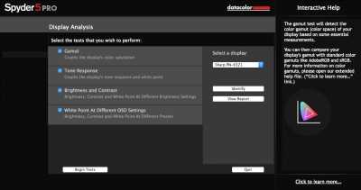 Если в вашей работе важна точная цветопередача, вам необходимо точно знать характеристики своего дисплея. Функция анализа дисплея позволит вам оценить качество всех своих дисплеев по передаче цветов, яркости, контрастности, цветовому охвату, передаче тонов и точке белого.