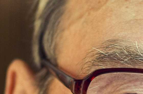 Фрагмент предыдущей фотографии. Большая диафрагма (f/1.8, вместе с фокусным расстоянием) дают глубину резкости в 0,68 см. Конечно при такой маленькой глубине резкости нужно очень точно выбрать область, которая должна быть в фокусе. На фотографии сверху видно, что если оправа очков очень четкая, то брови уже немного размытые. В идеале следовало бы сфокусироваться не на оправе, а немного позади нее. Волосы и уши на заднем плане уже полностью размытые.