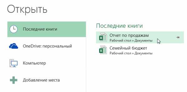 - Перейдите к представлению Backstage, затем нажмите Открыть. Появятся последние открытые книги.