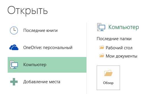 Данная вкладка позволяет открыть последние книги, а также документы, сохраненные в облачном хранилище OneDrive или на Вашем компьютере.