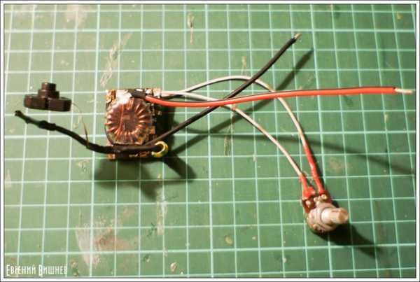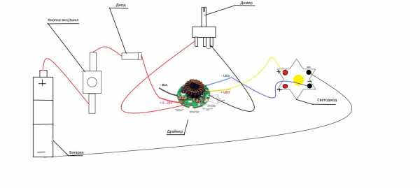 Затем, припаял провода от диода и диммера к драйверу. Напаял по 10 см, чтобы не возникло проблем с установкой.