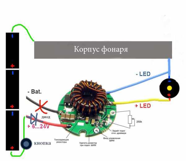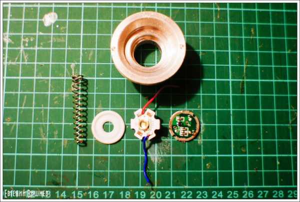 Внимание: При проведении тестовых испытаний фонаря во время сборки светодиод должен находиться на радиаторе, дабы избежать его быстрого перегрева.