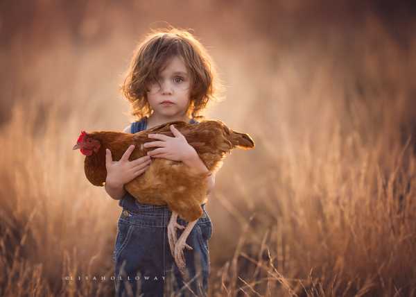 . Продумайте все детали предстоящей съемки и подготовьте все необходимое заранее — начиная с места съемки и заканчивая одеждой и реквизитом (в моем случае реквизит — это курица). В качестве одежды для своего сына я выбрала простой джинсовый комбинезон. Мне хотелось сохранить нейтральную и мягкую палитру цветов, и чтобы при этом главный герой выделялся на фотографии. И никаких отвлекающих моментов! Для съемки я выбрала самую спокойною и покладистую курицу из нашего хозяйства. Последнее, чего мне хотелось во время съемки — это укрощать злую непокорную курицу.2. Место съемки. Для фото съемки маленьких детей выбирайте безопасное место, до которого легко добраться. Этот снимок с курицей был сделан в высокой сухой траве, которая растет на соседнем заброшенном участке недалеко от нашего дома. Я выбрала именно это место съемки, потому что оно было близко от дома, там было достаточно места, чтобы снимать на длиннофокусный объектив, а сухостой смотрелся просто потрясающе, наполняясь золотистым светом послеполуденного солнца.