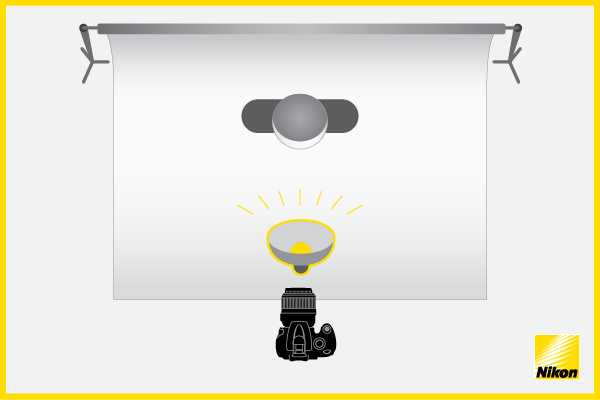 — Отражение. Расположите объект съемки таким образом, чтобы на него попадал только отраженный свет. Именно для этого фотографы, снимая в помещение, направляют вспышку в потолок. Необходимо учитывать, что при смягчении света путем рассеивания или отражения значительная часть его теряется, и освещенность объекта съемки снизится, вследствие чего необходимо вносить корректировку в параметры съемки (увеличивать мощность источника света или увеличивать выдержку, открывать диафрагму, повышать ISO).
