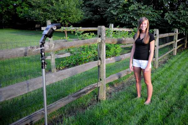 Уделите особое внимание футболке и волосам модели. Дальний правый край (с точки зрения зрителя) и того, и другого, почти белый. Поскольку вспышка находится позади модели, но не точно сзади, свет «перетекает» через край. Вы также можете увидеть этот эффект на заборе на переднем плане, и совсем немного – на лице модели.