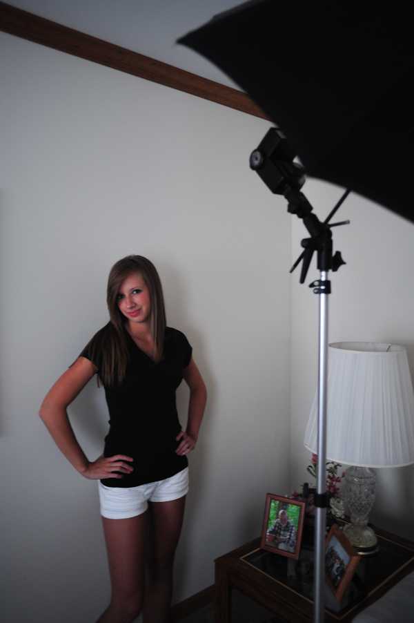 Есть ещё один вариант – опустить вспышку чуть-чуть ниже, чтобы сверху на модель падало не так много света. Сделайте выводы, исходя из моих ошибок, и уделите особое внимание мощности подсветки, которая создаётся вашей вспышкой.