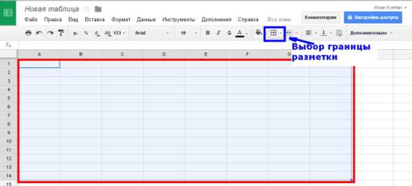 Для создания таблицы, выделяем мышкой её границы (смотрите скрин),